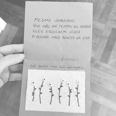 O que agosto desconcertou. Setembro assentou. Tento não me colocar em um lugar de grande dependência da validação externa ou de elogios. Mas, como uma pessoa que continua aprendendo a aceitá-los de maneira orgulhosa, venho agradecer à moça que pediu para voltar com a news. Amo esse espaço e, por priorizar outros projetos, acabei pausando esse. Um tema simbólico, o ato de presentear. A palavra “presente” vem do latim, referindo-se àquele que está presente ou “à frente” de alguém.